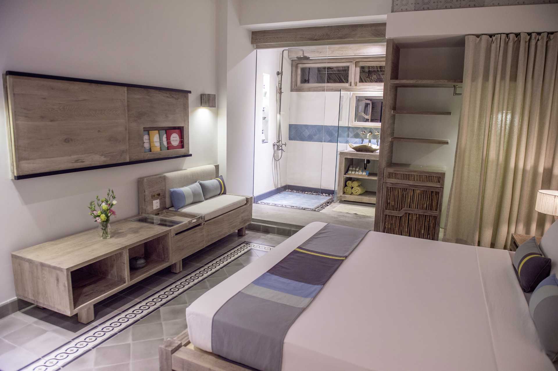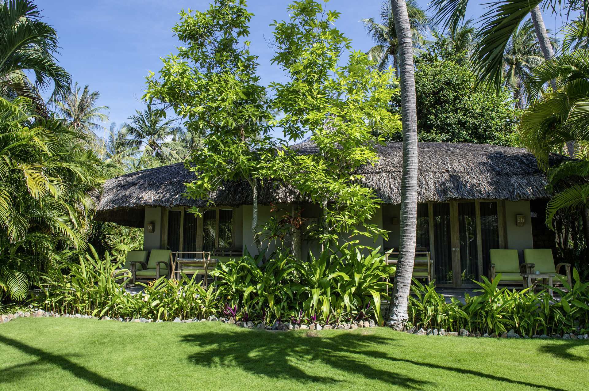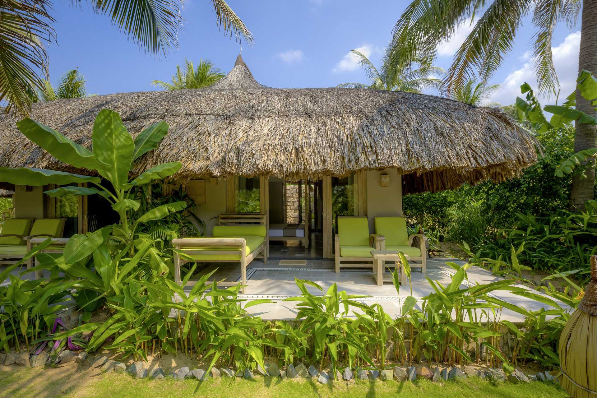 Deluxe-huoneita bungaloweissa maaterassilla. Terassilla on päiväpeti, nojatuolit ja pöytä. Parivuode tai kaksi yhden hengen sänkyä. Lisävuodemahdollisuus kokoontaitettavasta vuoteesta. Maksuton wifi, ilmastointi ja tallelokero. Kattotuuletin. Minibaari - kaksi pientä vesipulloa maksutta per päivä. Vedenkeitin, kahvia ja teetä. Tv kansainvälisillä kanavilla. Kylpytakit. Hiustenkuivain. Kylpyhuoneessa kaksi suihkua, kylpyamme ja wc. Kylpyhuone on osittain ulkona. Siivous 7 krt/viikko. Alle 2-vuotiaat lapset lasketaan lisävuoteella majoittuviksi henkilöiksi.